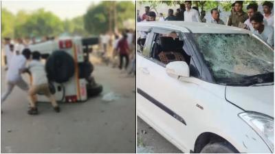 नोएडा फेज-2 में बवाल: कर्मचारियों के प्रदर्शन के दौरान पत्थरबाजी, गाड़ियों में आगजनी, भारी पुलिस बल तैनात
