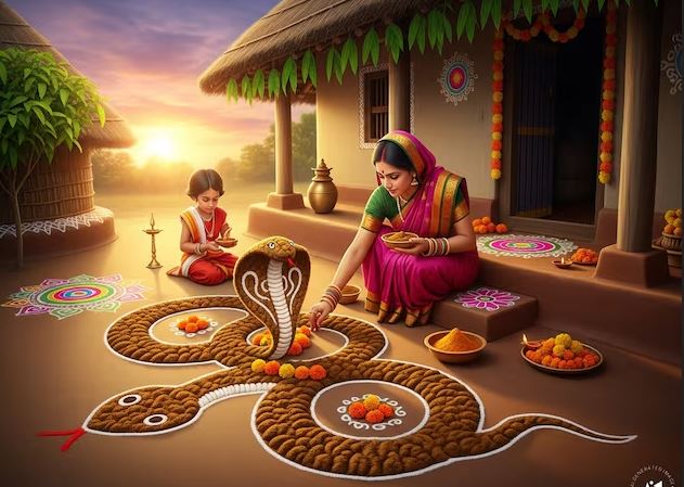3. गोबर से नाग बनाकर पूजा करने से वर्षा अच्छी होती है, फसलें लहलहाती हैं.