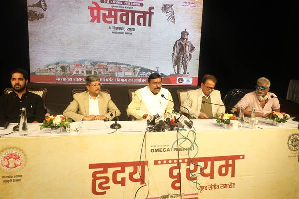 भोपाल : संस्कृति, पर्यटन और धार्मिक न्यास एवं धर्मस्व राज्य मंत्री (स्वतंत्र प्रभार) धर्मेंद्र भाव सिंह लोधी ने बताया कि संगीत समागम ‘ह्रदय दृश्यम’ के आठवें संस्करण का आयोजन 5 से 7 दिसम्बर, 2025 तक भोपाल के तीन स्थानों पर किया जा रहा है। रविन्द्र भवन में 5, 6 दिसंबर को जगदीशपुर में और भारत भवन में 7 दिसंबर को आयोजित किया जाएगा। इस समारोह में राष्ट्रीय एवं अंतर्राष्ट्रीय स्तर के कलाकारों की संगीत सभाएं होंगी। 'ह्रदय दृश्यम' मध्यप्रदेश की दूरदर्शी सांस्कृतिक संवेदना का ऐसा उदाहरण है, जो प्रदेश की कलात्मकता को नए आयाम देता है। इस संगीत समारोह के माध्यम से एक ओर समृद्ध सांस्कृतिक संसार की छवि सुरों के माध्यम से उकेरी जाती है, दूसरी ओर मध्यप्रदेश की प्राचीन धरोहरों को बढ़ावा दिया जाता है।