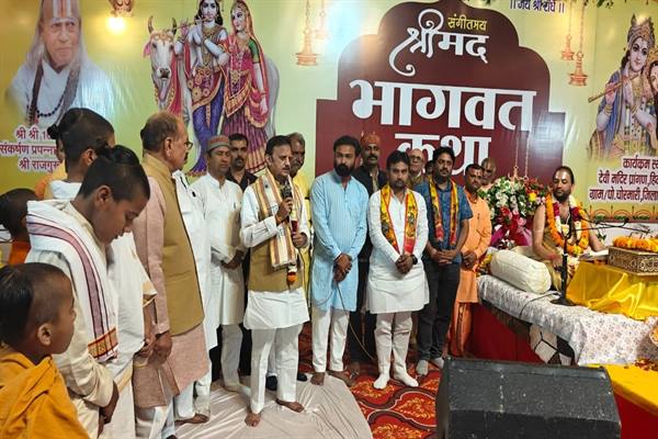 श्रीमद भागवत कथा में शामिल हुए उप मुख्यमंत्री शुक्ल