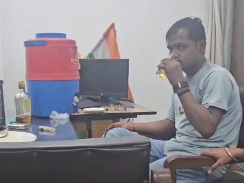 ऑफिस टाइम में शराब पार्टी! रीवा के सरकारी कार्यालय में बाबू पकड़ा गया