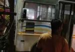 नशे में बस चालक ने मारी टक्कर, बिजली पोल से भिड़ी बस -