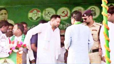 जनसभा के दौरान लड़खड़ाए तेजस्वी, तबीयत खराब होने के बाद कार्यकर्ताओं ने सहारा देकर मंच से उतारा