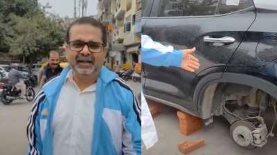 AAP नेता अवध ओझा की कार के पहिये चोरी, वीडियो हुआ वायरल