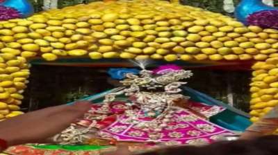 उत्तर प्रदेश की तीर्थ नगरी वृंदावन के प्रसिद्ध बांके बिहारी मंदिर में, भगवान को विशेष रूप से आम के फूलों से सजे एक बंगले में विराजमान किया गया है. ‘मैंगो...