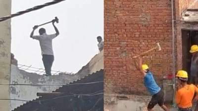 नाले की जमीन पर बने थे 3 अवैध घर अब चला हथौड़ा