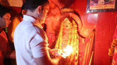 राहुल गांधी बाय रोड रायबरेली पहुंचे रास्ते में हनुमान मंदिर में की पूजा