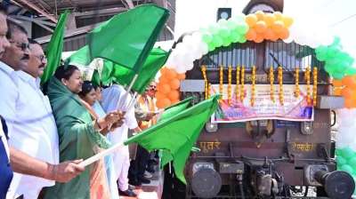 मुख्यमंत्री तीर्थ दर्शन योजना : मंत्री लक्ष्मी राजवाड़े ने हरी झंडी दिखाकर विशेष ट्रेन को किया रवाना
