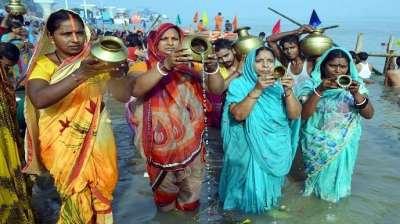 छठ पूजा पर ट्वीनसिटी में अस्ताचलगामी सूर्य को अद्र्ध देने नगर के तालाबों में पहुंचे उत्तर भारत के लाखों लोग
