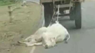 इंसानियत शर्मसार; मृत गोवंश को ट्रैक्टर के पीछे बांधकर सड़क पर घसीटा