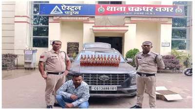 रायगढ़ में ओडिसा से लाई कार समेत शराब की अवैध खेप जब्त