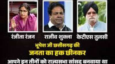 रायपुर । बीजेपी ने कांग्रेस राज्य सभा सांसदों को लेकर कसा तंज, लापता वाला पोस्टर किया जारी बीजेपी ने x पर पोस्ट कर लिखा । छत्तीसगढ़ियों का हक मारने वाले कांग्रेसियों...