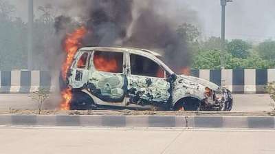 चलती कार में लगी आग